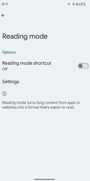Конечно, как и многие другие специальные функции, режим чтения может принести пользу любому, кто использует свой телефон для чтения, а я бы рискнула предположить, что это все, у кого есть телефон. Оно удаляет все нетекстовые материалы — изображения, ссылки, рекламу, всплывающие окна, видео и т.д. — и оставляет только текст на модальной вкладке, которую легко прокручивать и просматривать. Оно даже сообщает, сколько времени потребуется, чтобы прочитать определенную статью. При активации «Режим чтения» также отключит уведомления и другие системные всплывающие окна, что даст краткую передышку от всех назойливых сообщений с телефона во время чтения.
