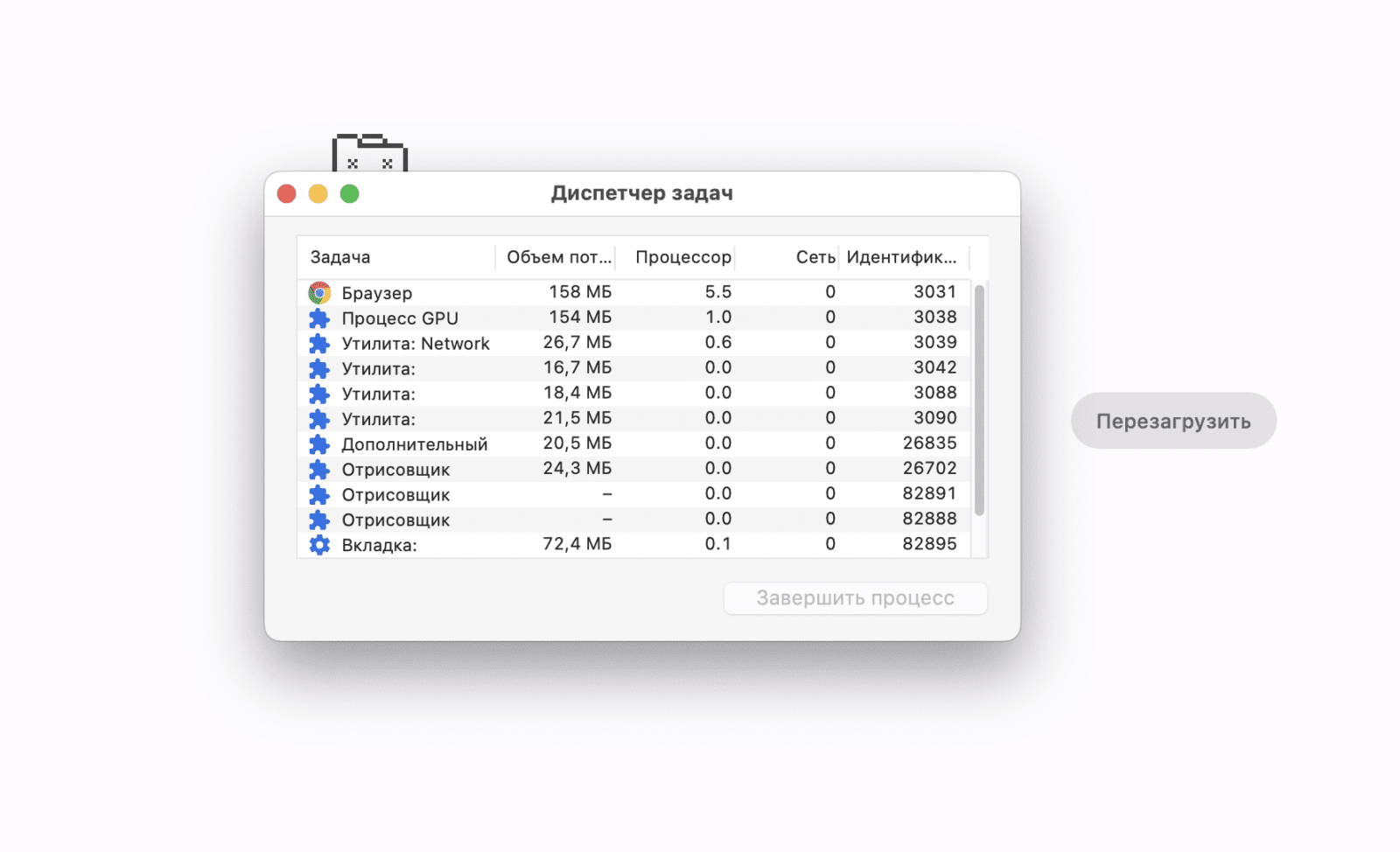 !! Дважды проверьте, какие процессы вы собираетесь закрыть, чтобы не завершить преждевременно что-то важное. Ускорение работы Google Chrome не стоит того, чтобы случайно потерять данные, которые еще предстоит сохранить.