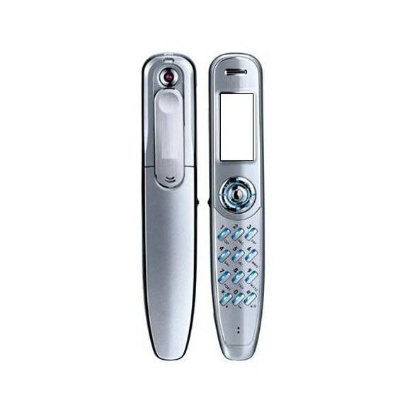 В чём странность: Телефон в форме ручки — тоненький цилиндр с крошечным экраном 64×128 пикселей, микрокамерой 0,3 Мп и клавиатурой, на которую мог попасть только человек с пальцами новорождённого.