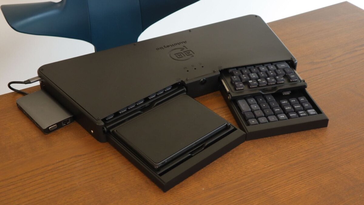 AutoKeybo — это ультрасовременная выдвижная клавиатура, которая меняет представление о комфортной работе. Устройство автоматически выдвигает клавиши только тогда, когда это нужно, что делает его особенно удобным для пользователей, стремящихся к минимализму на рабочем месте.