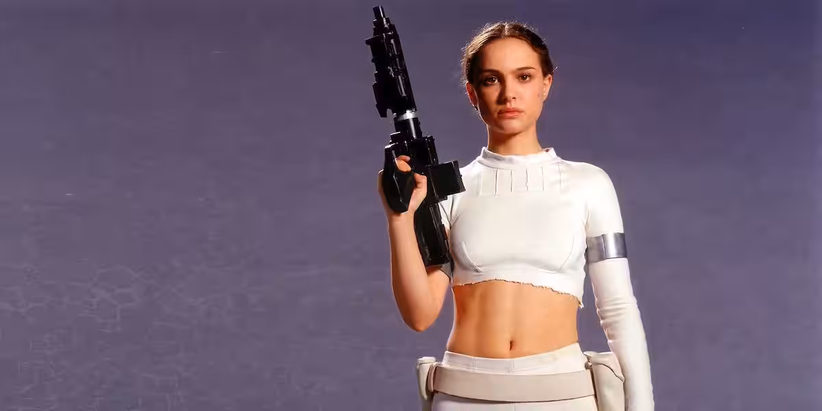 Падме Амидала — сочетание хрупкости и власти. Сложные костюмы, оголённая шея, прямой взгляд. В приквелах Star Wars Портман буквально переписала образ королевы в sci-fi: она одновременно нежная и недосягаемая. А сцена в чёрном — один из самых тихих, но цепляющих моментов фан-сервиса во всей саге.