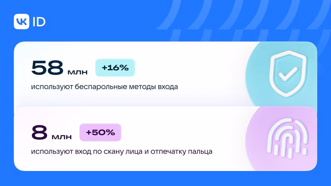 Российские пользователи VK вдвое чаще выбирают вход по лицу и отпечатку пальца